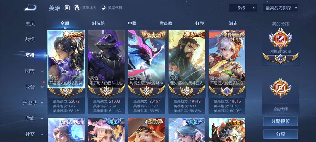 120段对抗路国服50强对抗历史7大国服两万战力马超吕布蒙恬❤️马超关羽木兰马年皮肤李信无双可排位