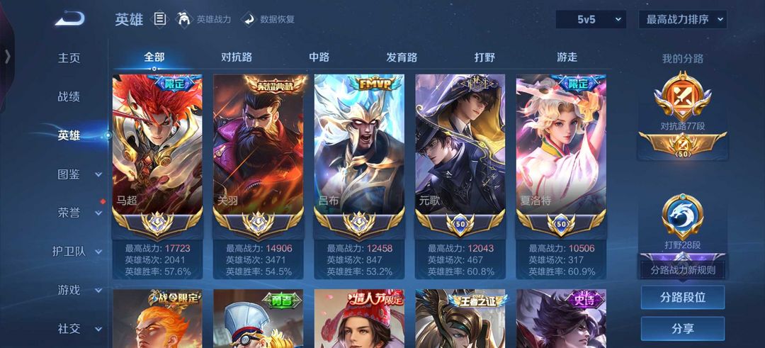 十二月在榜小国标对抗路+省标马超关羽吕布夏洛元歌巅峰历国服马超近1w8战力李信小国标司空震