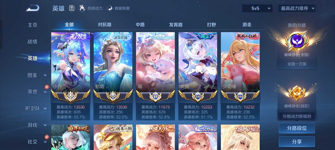 只能无限乱斗女号三月三个在榜小国标瑶少司缘大乔桑启+禁止巅峰1k9+十省标小巧朵莉亚西施❤️历大国服