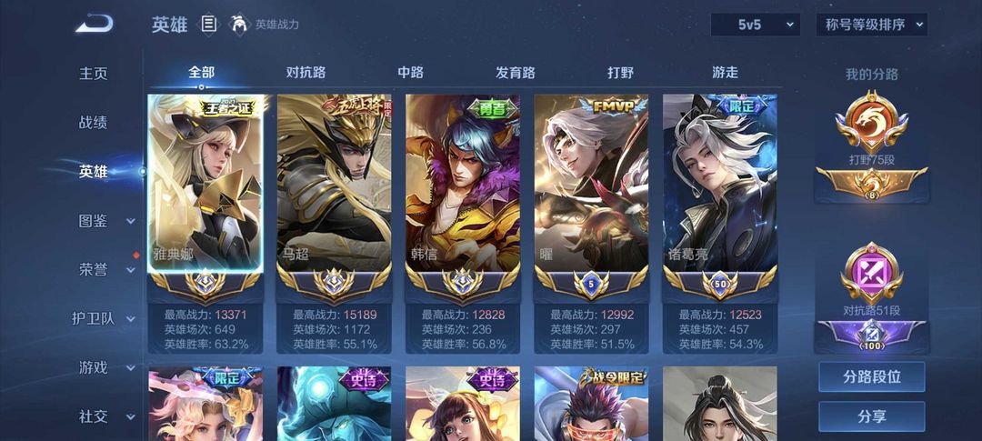 十一月在榜国服韩信⭐巅峰2100⭐75段打野历史大国服马超雅典娜