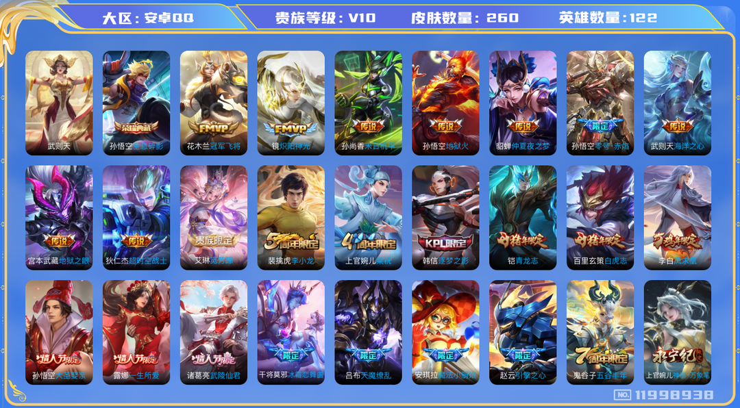 游戏区服:王者荣耀-QQ安卓-QQ账号