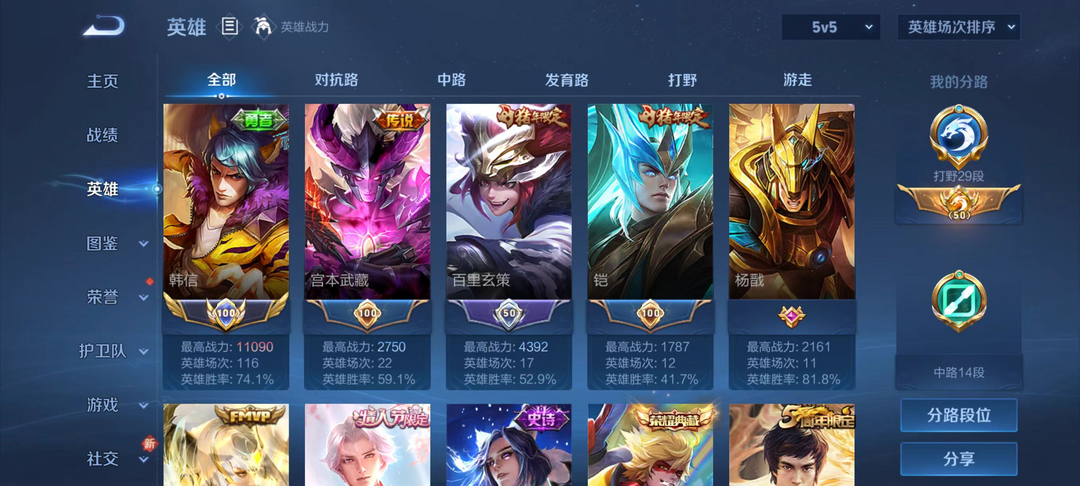 v10 260皮2典藏16传说 12月在榜金标韩信 历史国服韩信