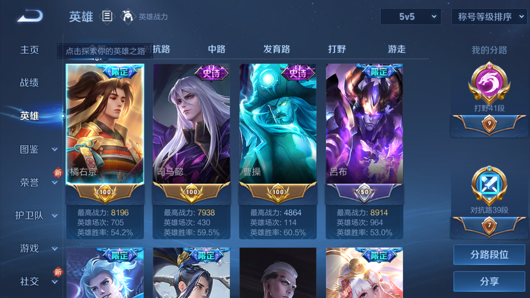 打野41段!V7!325皮肤鸣剑曳影-浮生妄-枫霜尽-全兔年-怒海麟威-无双飞将-深海之息!禁言