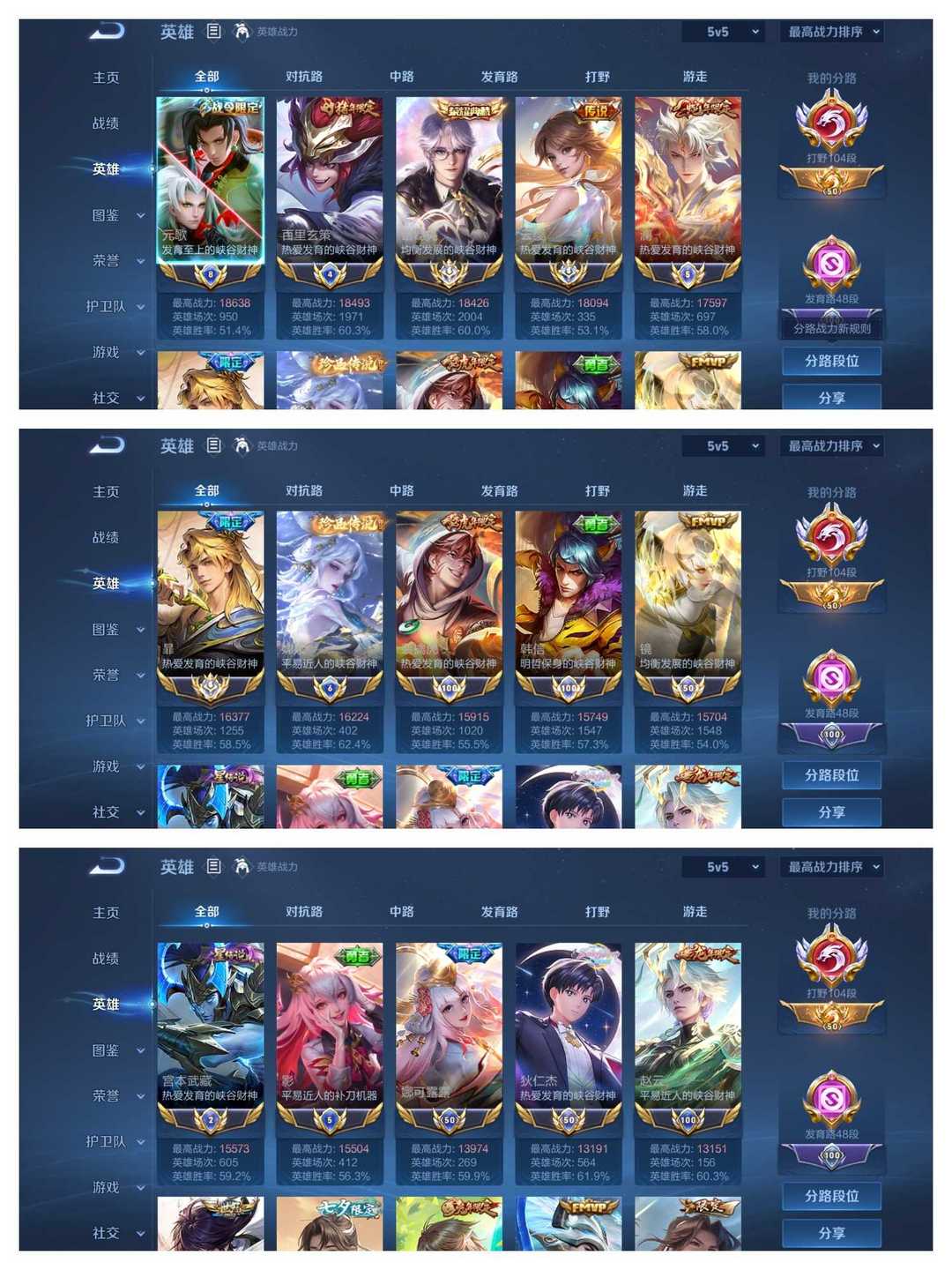 百段打野104段⭐16国服⭐国服镜⭐国服老虎⭐国服澜⭐国服玄策⭐国服韩信暃宫本云缨诸葛⭐巅峰百强