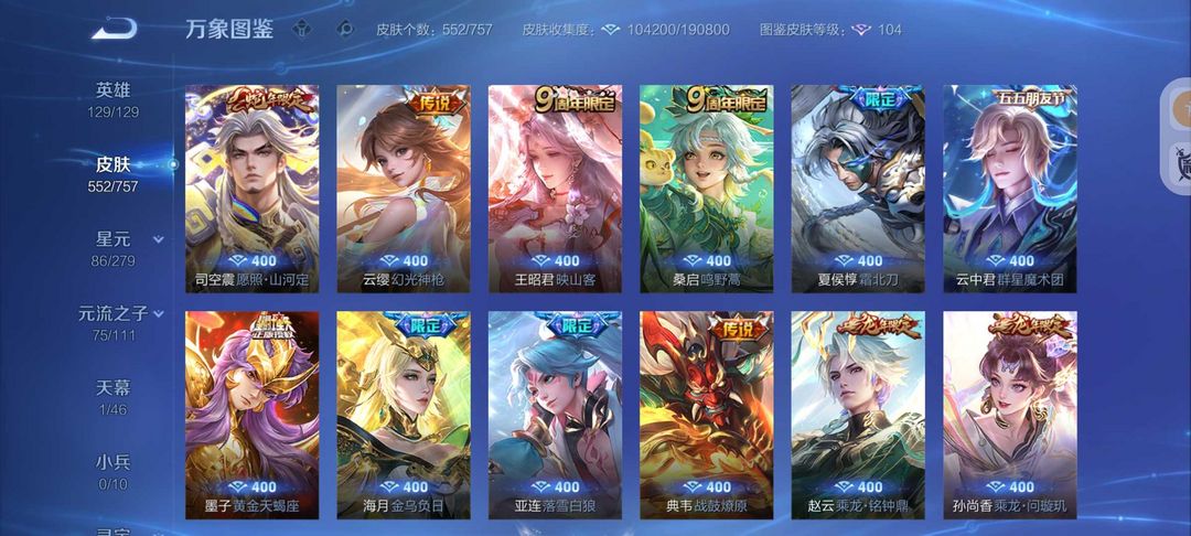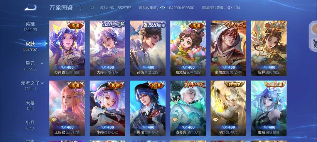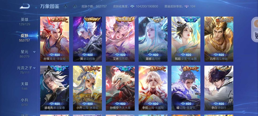 装备描述:中路63段打野60段❤7万战❤552皮肤7典藏4无双❤离烟恨怪盗基德诡秘之主满蛇年限定皮❤