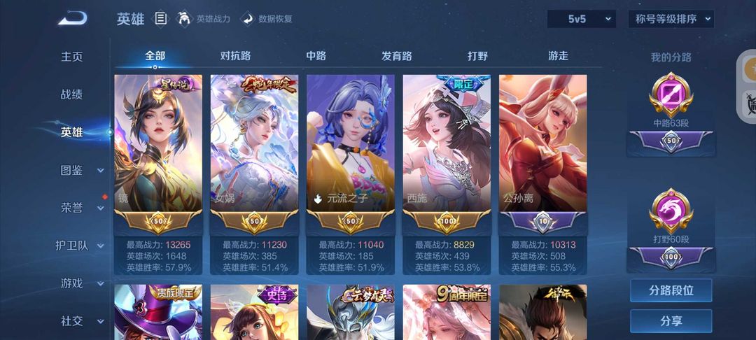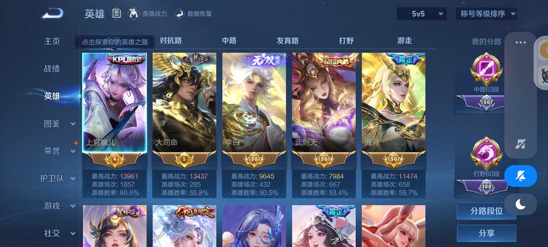 中路63段打野60段❤7万战❤552皮肤7典藏4无双❤离烟恨怪盗基德诡秘之主满蛇年限定皮❤