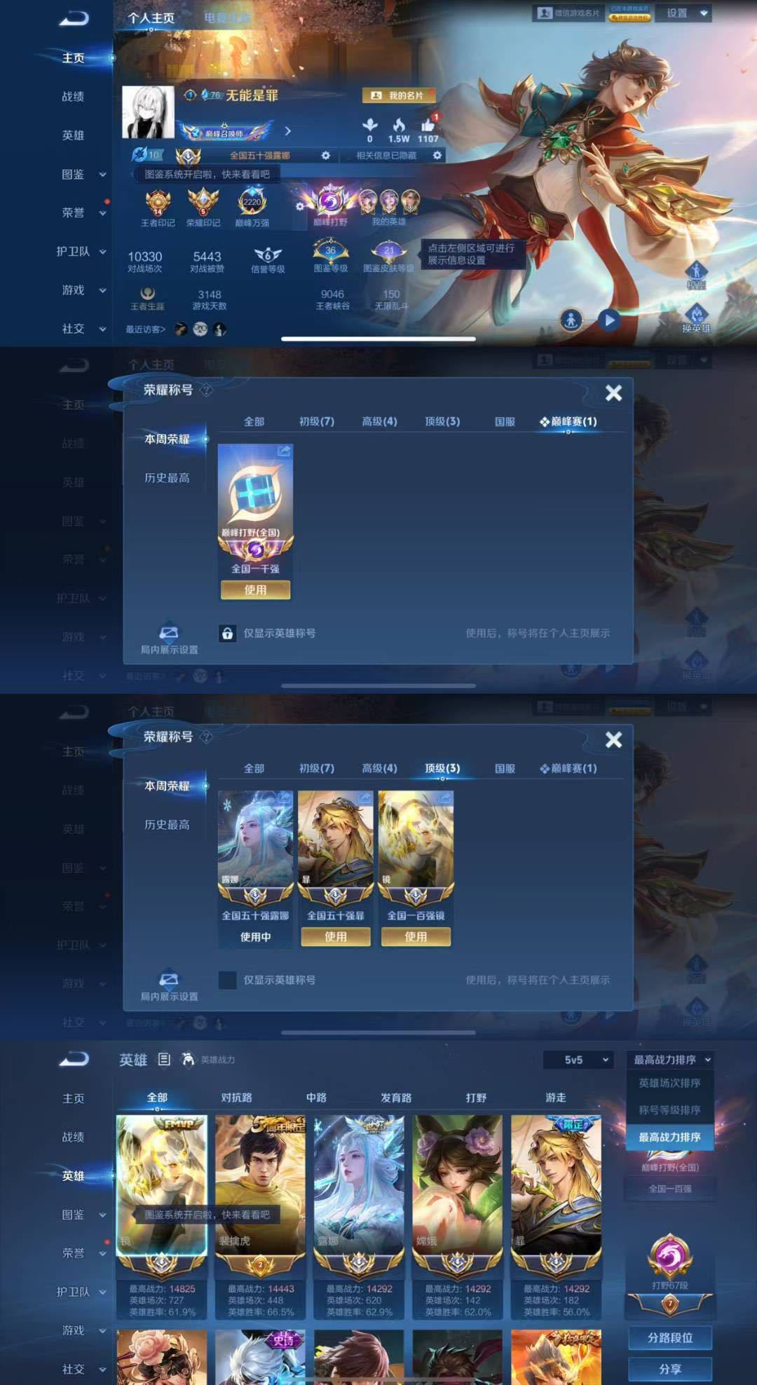 三月在榜国服镜澜裴擒虎⚡️巅峰前十猴子香香阿离马可⚡️小国标老虎马超木兰120