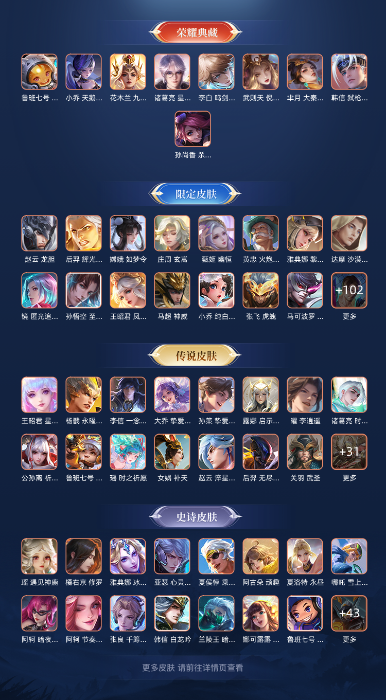 限制: 撤单率<90%才可租用此帐号装备描述:毁号,涉及毁坏虚拟财产罪及计算机安全罪,请文明游戏素质游戏,让我们共建美好租号平台 本游戏账号: 英雄多皮肤多。典藏皮肤3个感受典藏皮肤带来的优质体验快感FMVP皮肤7个尽情享受FMVP皮肤带来的主角光环 私人所属英雄皮肤有:孙尚香 杀手不太冷花木兰 九霄神辉铠 银白咏叹调百里守约 碎云孙尚香 音你闪耀孙尚香 末日机甲孙尚香 异界灵契关羽 武圣李信 山海·炽霜斩李信 一念神魔李白 诗剑行诸葛亮 武陵仙君诸葛亮 鹤羽星尊孙悟空 齐天大圣孙悟空 零号·赤焰上官婉儿 神器·万象笔上官婉儿 妄想奇谈李元芳 飞鸢探春大乔 挚爱花嫁狄仁杰 超时空战士狄仁杰 神器·狴犴令狄仁杰 夜礼服假面王昭君 星穹之声王昭君 乞巧织情后羿 无尽星芒后羿 黄金射手座虞姬 云霓雀翎虞姬 无限倾心虞姬 启明星使娜可露露 前尘镜貂蝉 仲夏夜之梦瑶 时之祈愿不知火舞 绯月行澜 电玩·雷克斯孙策 挚爱之约蔡文姬 花朝如约鲁班七号 寅虎·瑞焰女娲 补