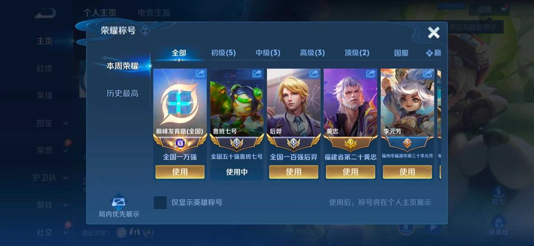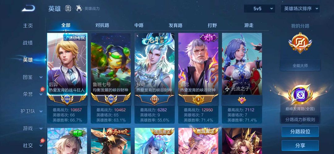 巅峰万强发育路⭐4月正式服在榜五十强鲁班后羿⭐v10贵族皮肤共享⭐超多省级限定⭐可排位禁巅峰