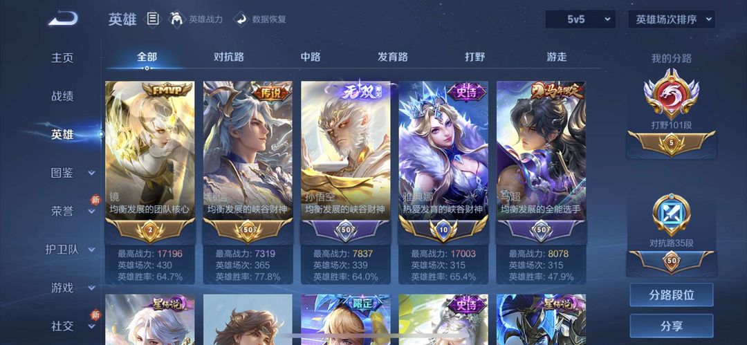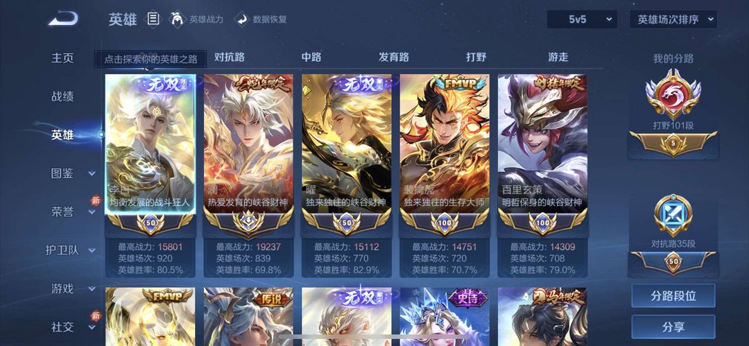 百段打野历史19000战力国服澜小国标老虎玄策李白曜❤️高胜率帅号带妹必备马超韩信马年不能招募