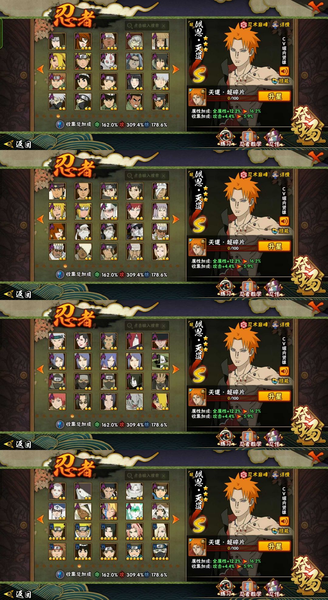 仙人巳月♒九喇嘛水门♒350忍者♒2300万♒漂泊带土♒须佐卡卡西♒百战佩恩♒忍战带土♒天道超