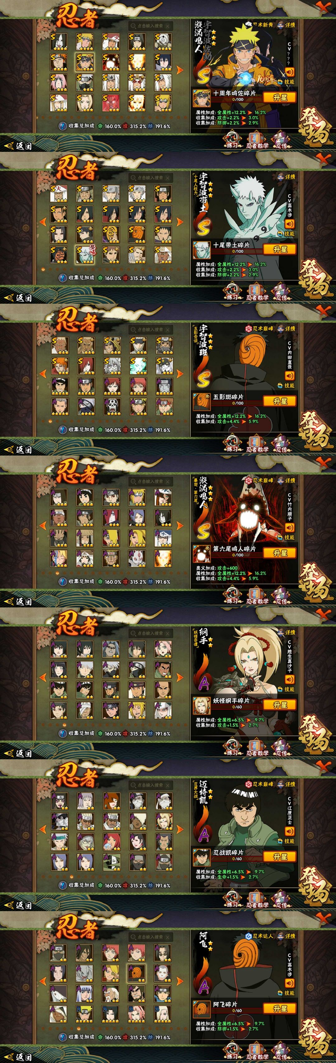十尾带土☀十周年鸣佐☀55S90A☀380忍☀全高招☀妖怪纲手☀五影会谈斑☀六尾鸣人☀舍人☀须佐止水
