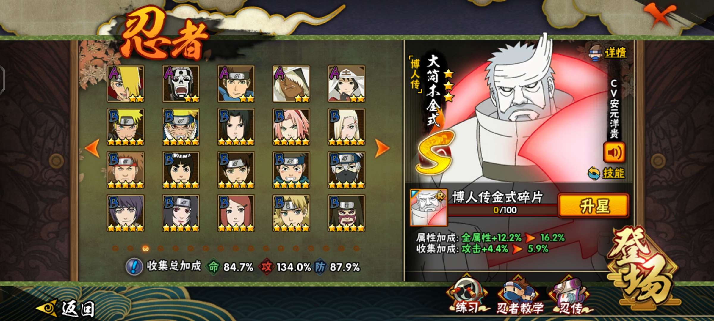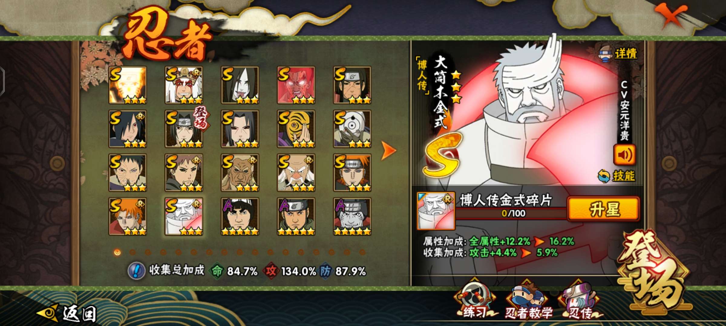 自来也⭐忍战李⭐永恒佐助⭐漩涡鸣人(连结)⭐佩⭐恩 六道(浪客)⭐天道超⭐忍战雷影⭐秽土解斑⭐