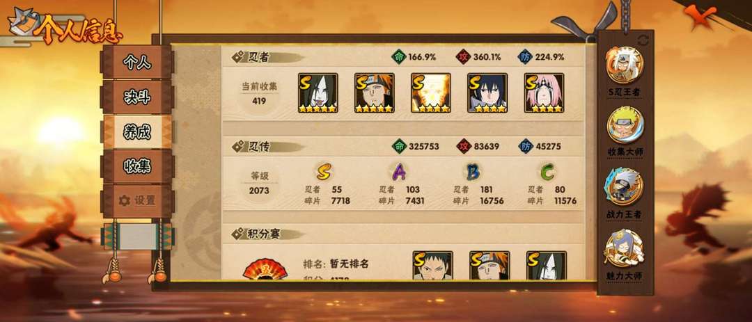 新忍漂泊团藏已秒,全通灵,全密卷,419忍者,63魅力,55S忍,103A忍,181B忍,全c忍