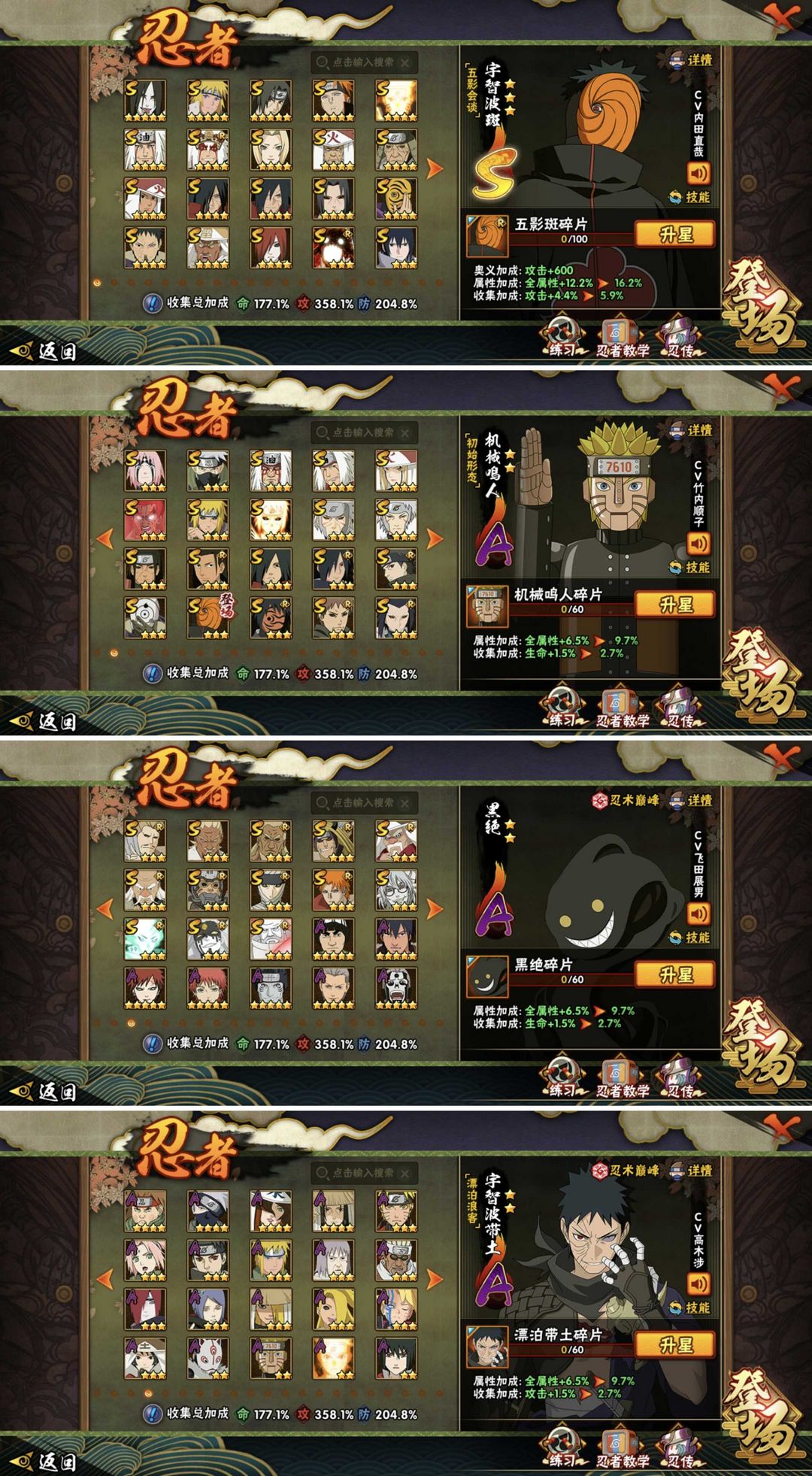 五影会谈斑✨3200w399全忍者✨53S+92A✨黑绝✨漂泊带土✨机械鸣人✨忍战卡卡西✨天道超