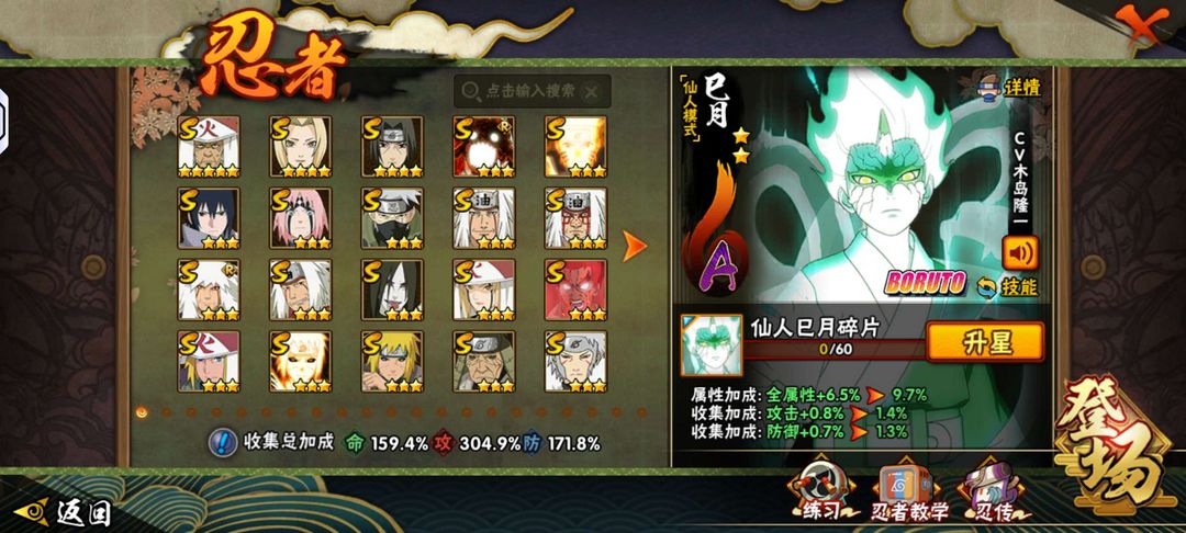 2500w战力,50s99a,383忍者,全高招,忍战带土,天道超,仙人已月,九喇嘛水门。