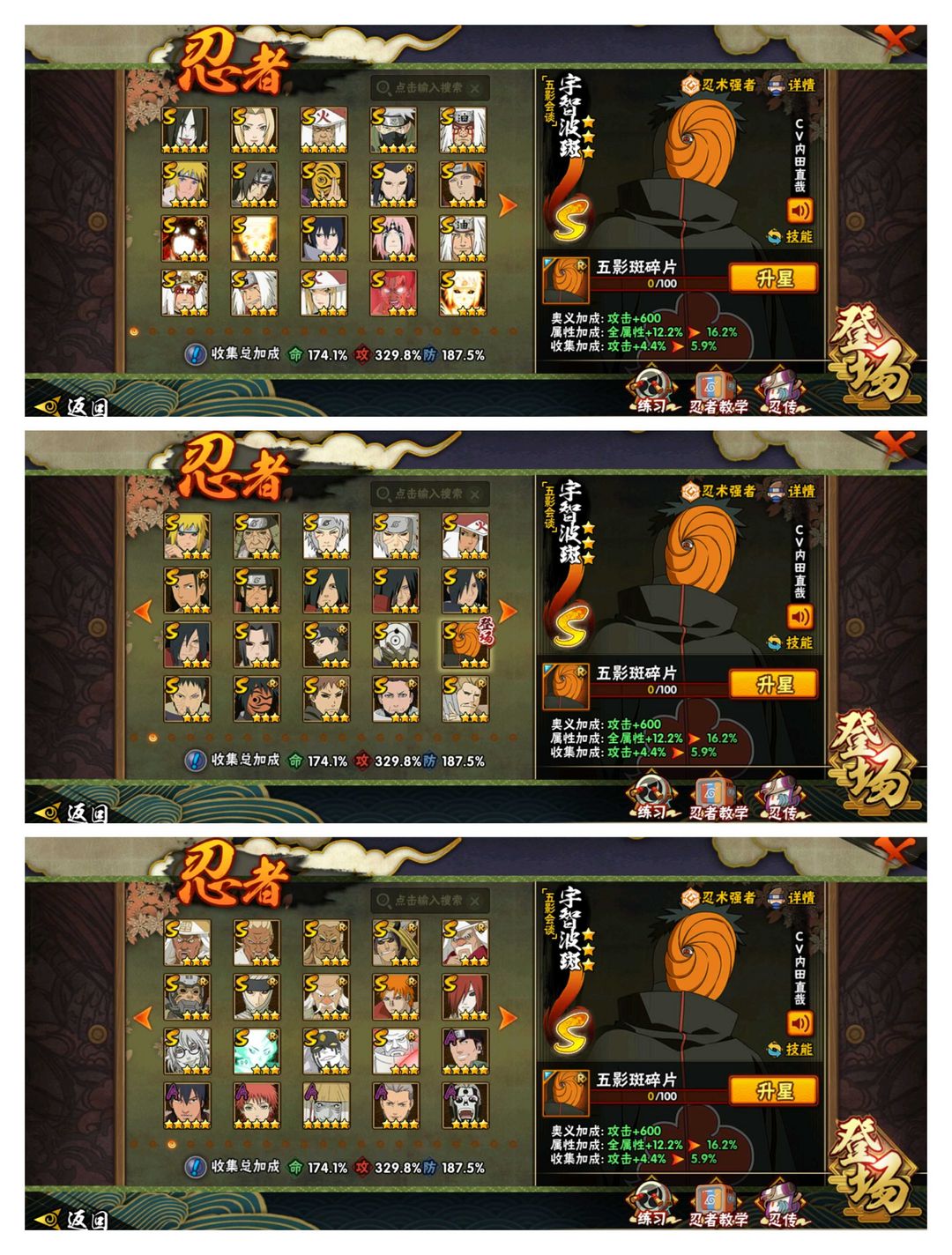 侠隐佐助☀️黑绝五影会谈斑☀️战区榜一380全忍者满通灵☀️九喇嘛水门☀️高属攻3000W战