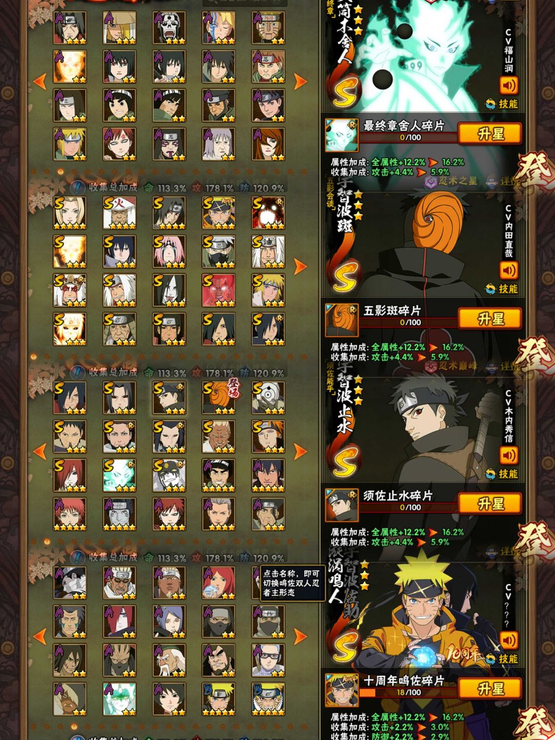 33S45A1800W十周年鸣佐五影斑✨九喇嘛水门六尾鸣人✨烈斗大筒木舍人✨须佐卡卡西✨须佐止水