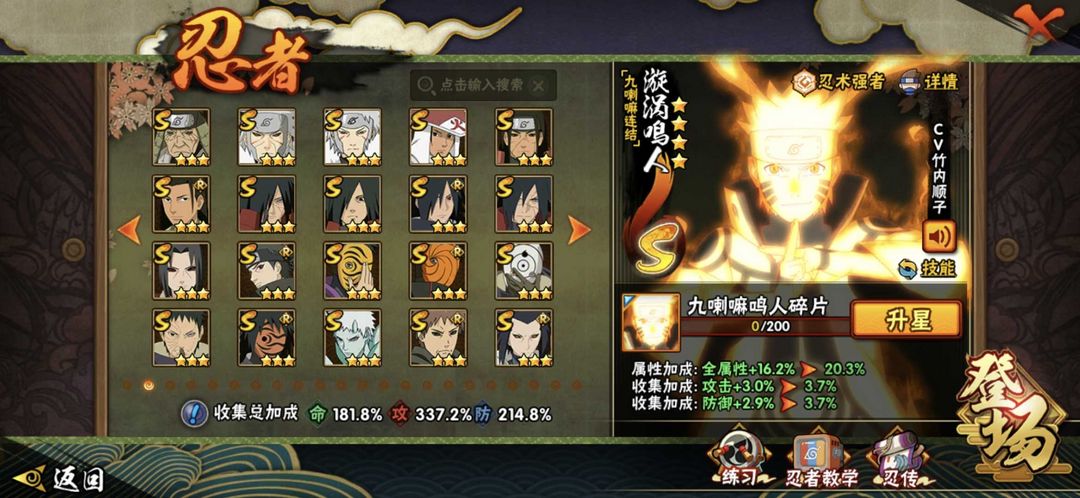 56S⚡3400W团本无压力⚡十尾带土五影斑九喇嘛水门死门凯暴怒六尾烈斗舍人传说自来也须佐止水