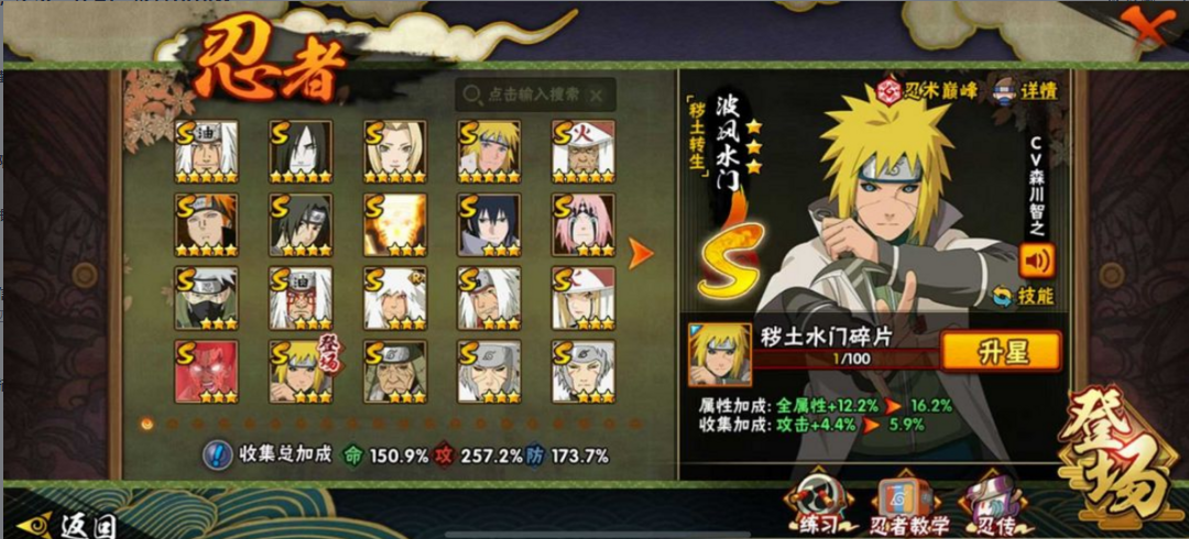 V13,S*32,A*41,战力1616W大筒木金式;波风水门 「秽土转生」;艾 「四代目雷影」;宇