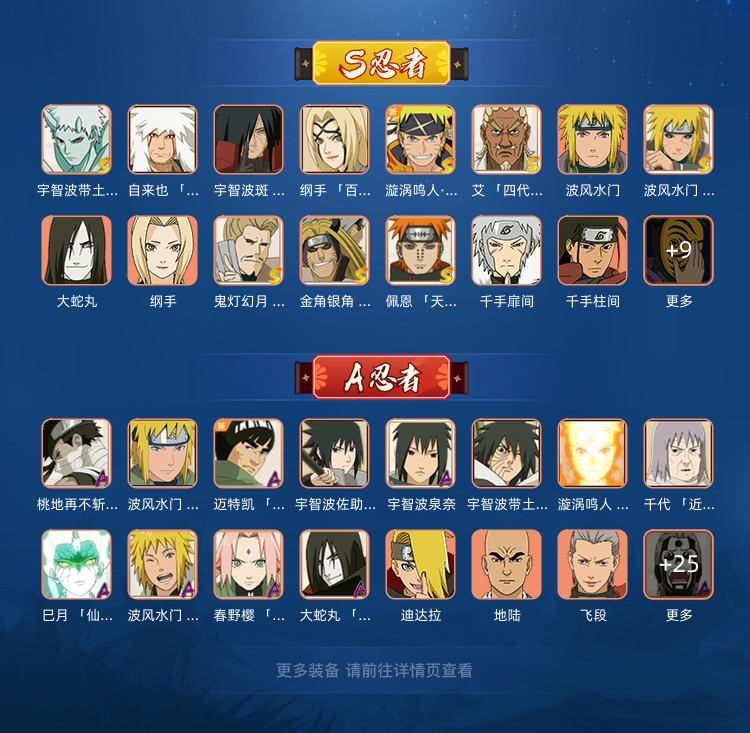 装备描述:九喇嘛水门⭐须佐卡卡西百战佩恩须佐鼬鬼灯幻月虎皮带土秽土长门秽土三代金银角忍者死门凯