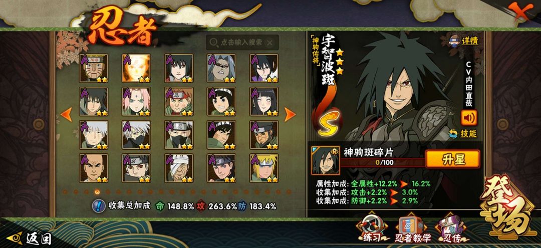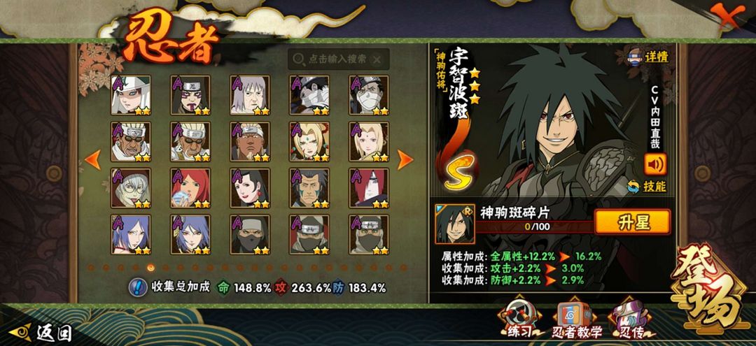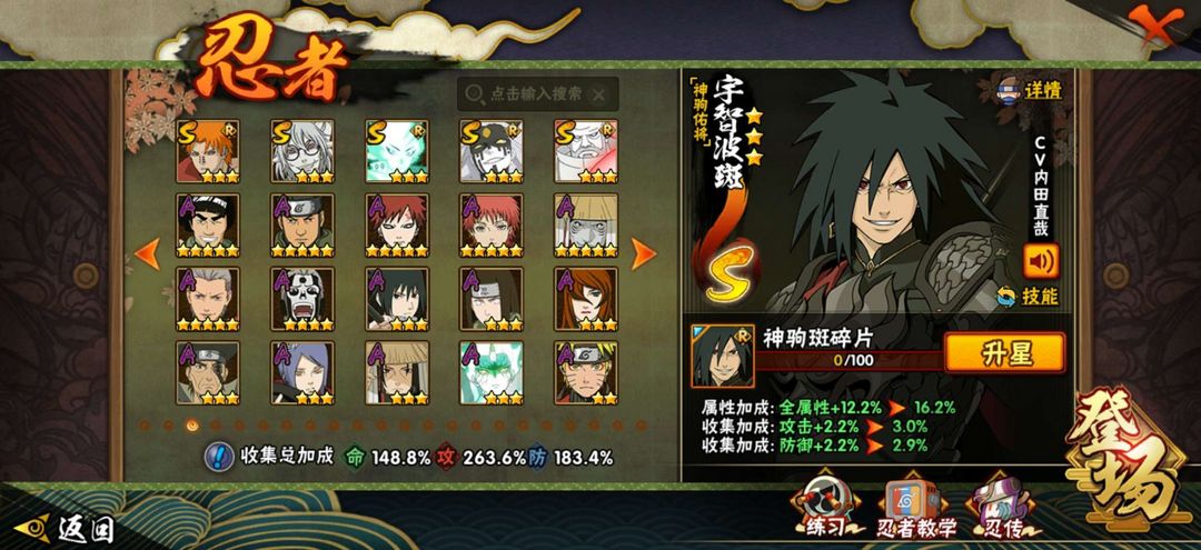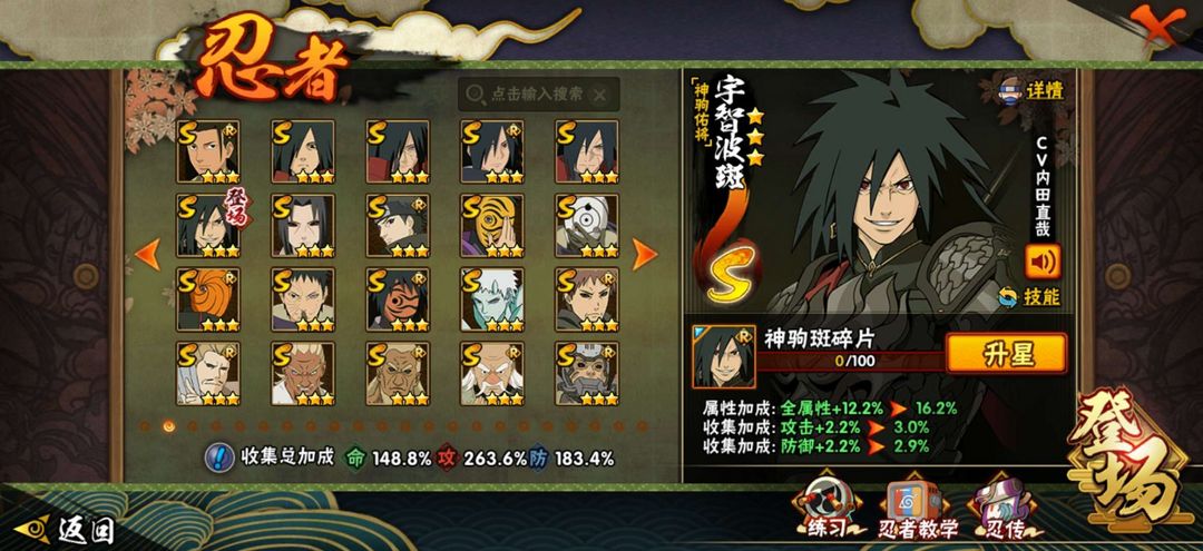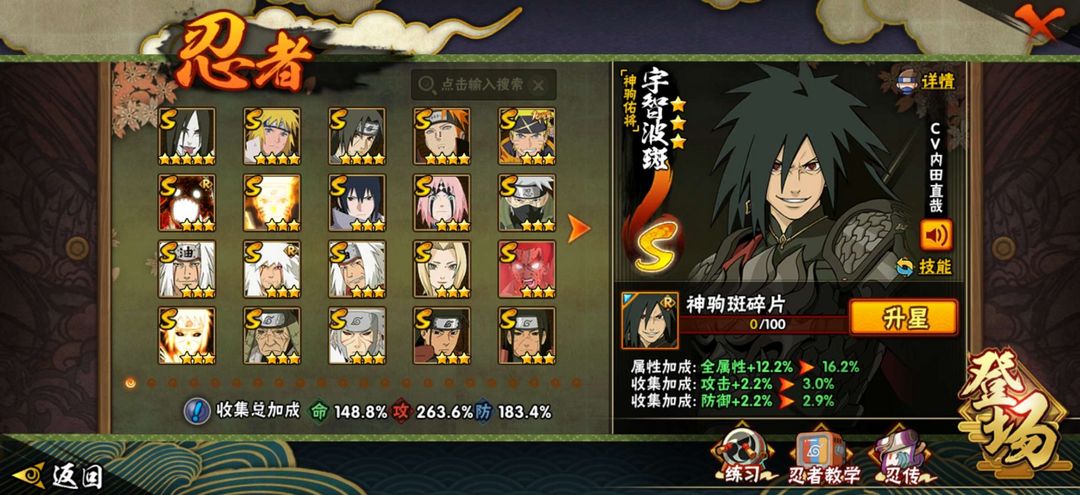 马斑、十尾带土、金身水门、小胡子五影斑等40多个s忍者、创生迪达拉鸡翅、怪谈纲手、侠隐佐助、漂泊带土