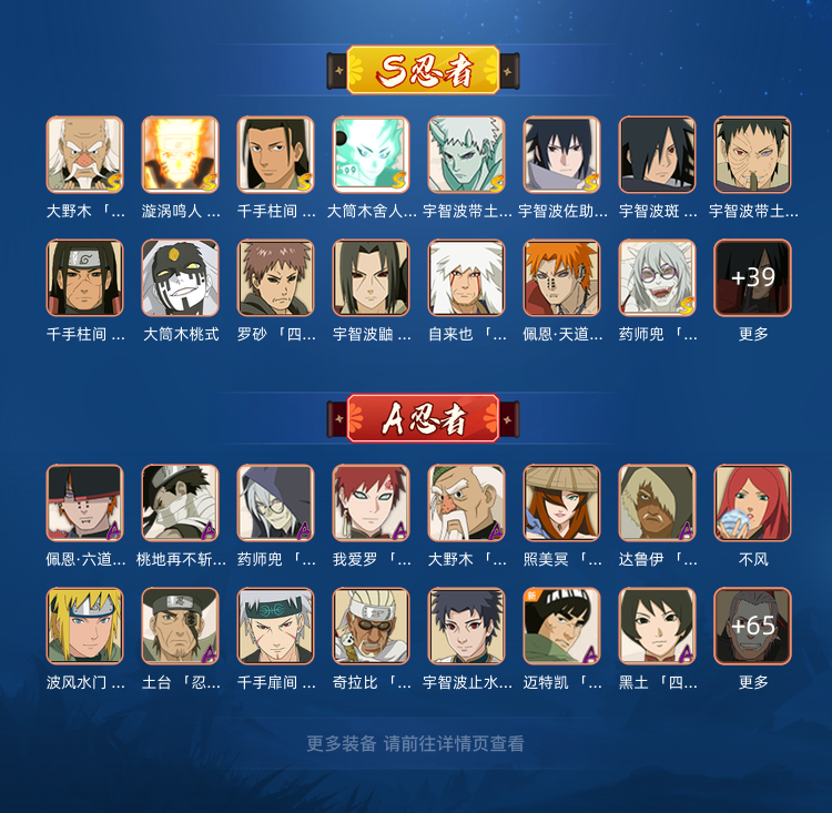 装备描述:三月份出神驹斑和六道带土,几乎所有热门角色都有