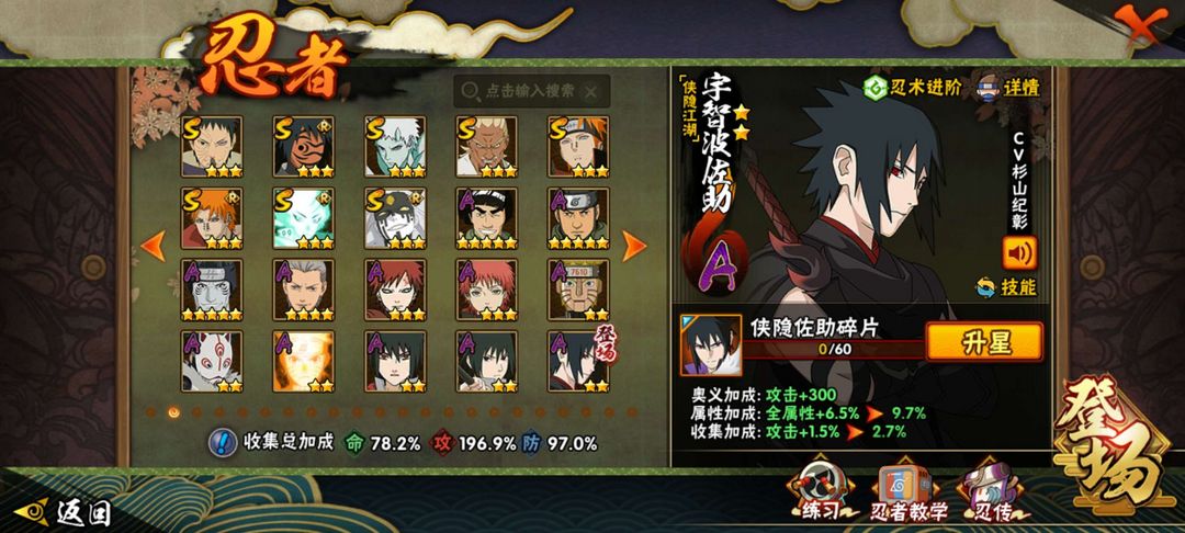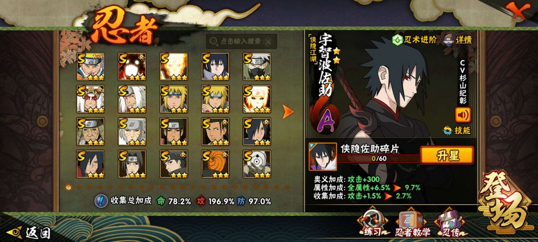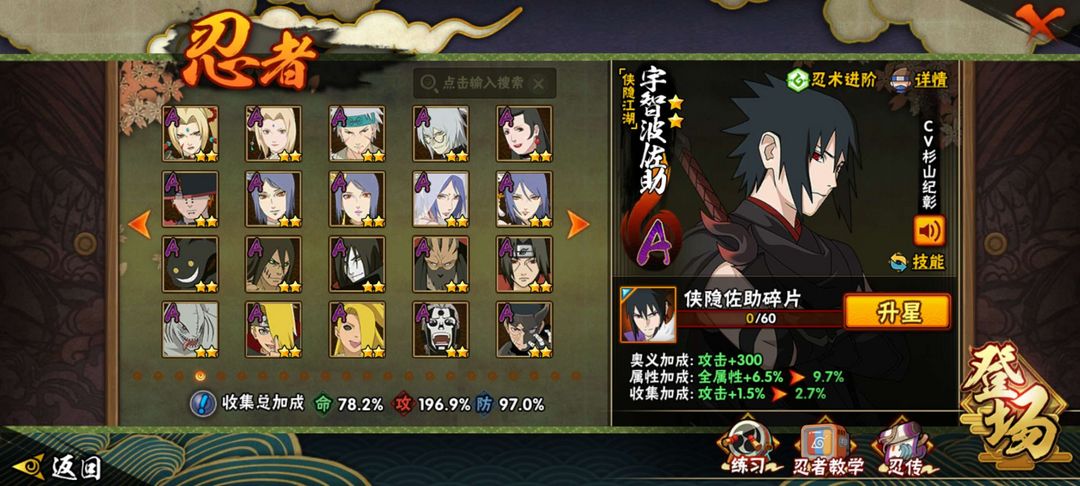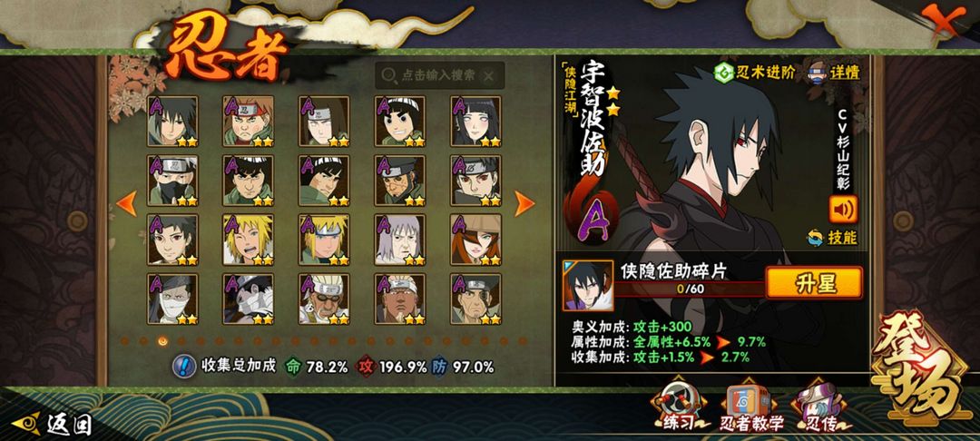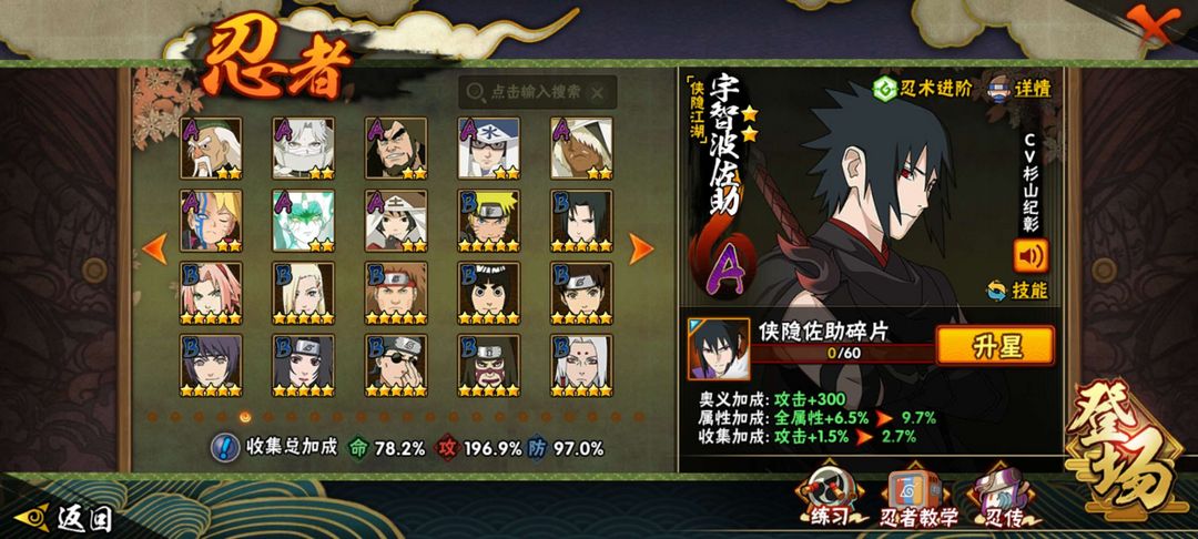 点卷忍者多,大多数都是热门的,漂泊和侠隐系列的忍者都有