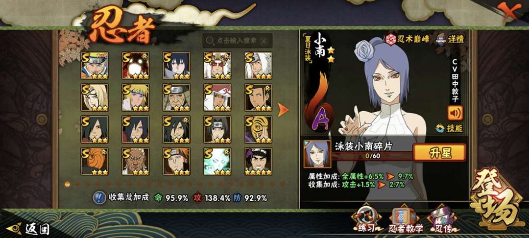 装备描述:夏日黑土,黑绝 新春小南,泳装小南,神驹阿斯玛,新春我爱罗,漂泊小南,侠隐佐助,无影班,传说自来也