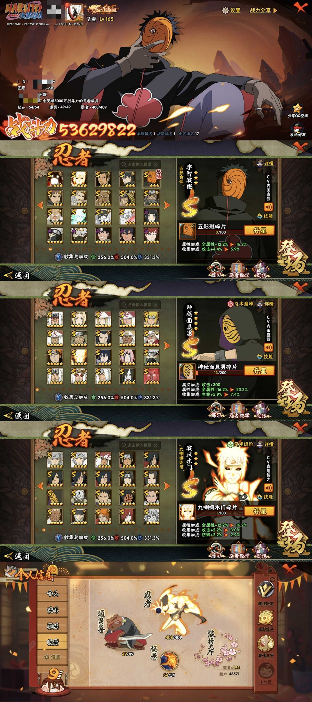 五影会谈斑全忍❤️全服三榜5400万无上忍道❤️团本2分钟❤️戴帽虎皮妙木山❤️氪70W九喇嘛水门
