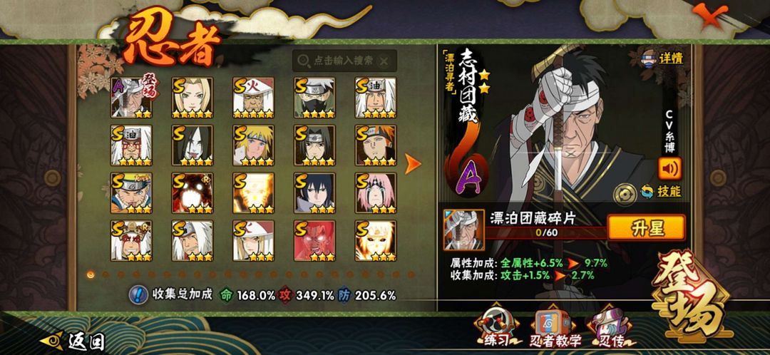 54s✨98A✨漂泊团藏✨六道带土✨金身水门✨仙人巳月✨全高招A✨点券忍者大部分都有✨绝对不亏!