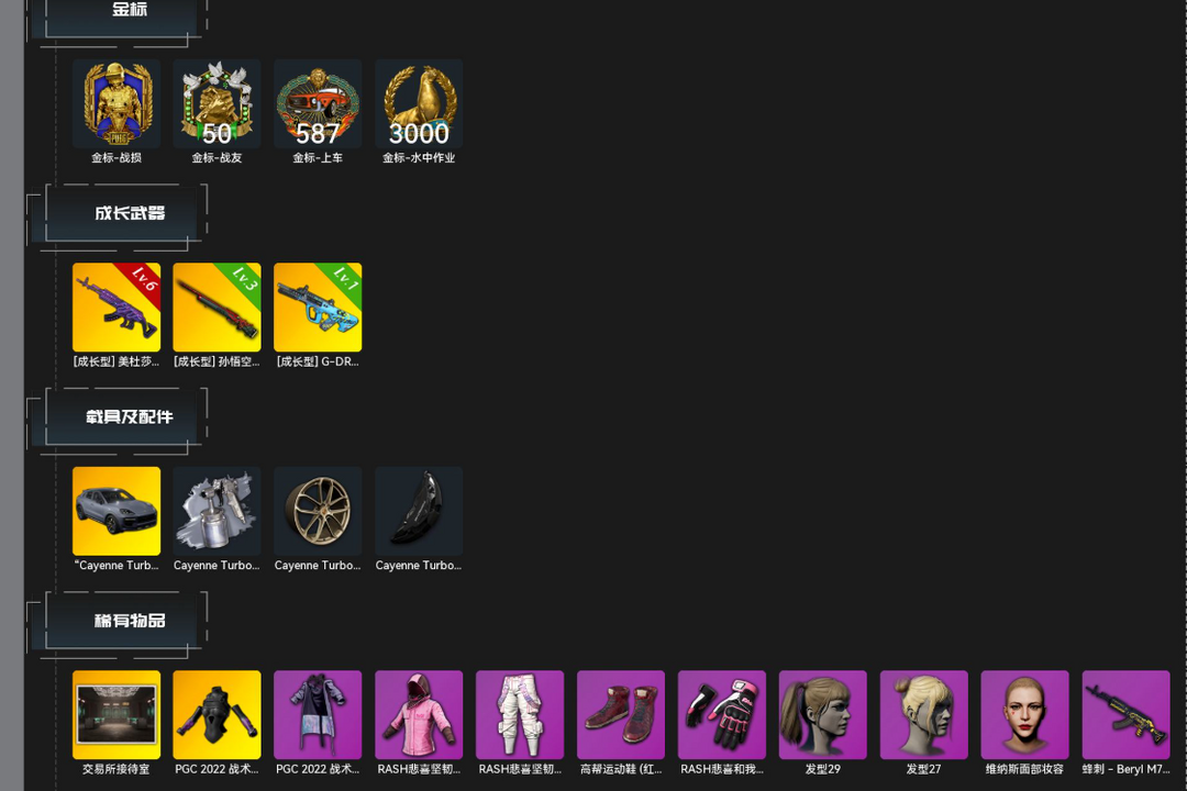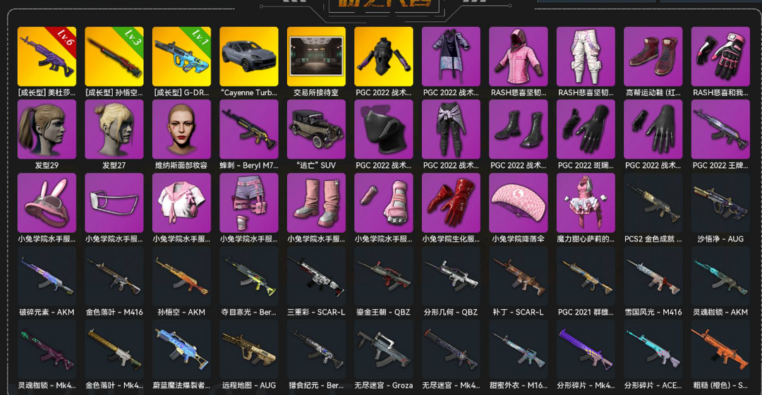 6级美杜莎M762√保时捷跑车√权志龙AUG√悟空M24√双马尾√丸子头√发光手臂