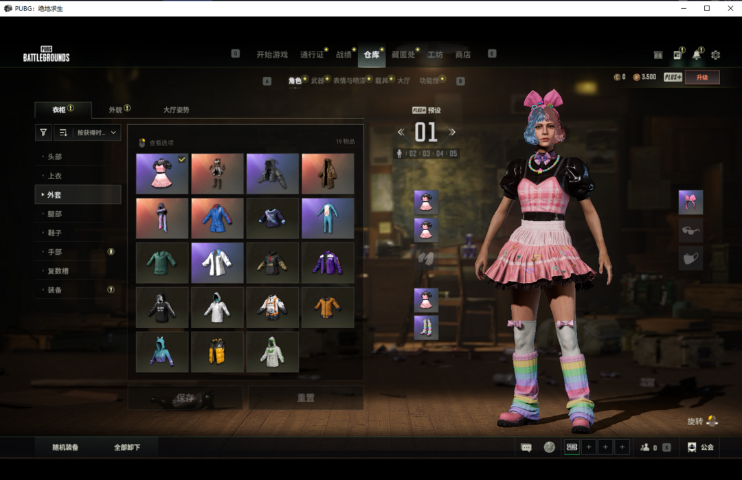 装备描述:③级最新异色宇宙之力98k✨王牌登场SLR✨电玩主播套✨布加迪女士套装✨兔兔也朋克套✨窒息的爱套✨