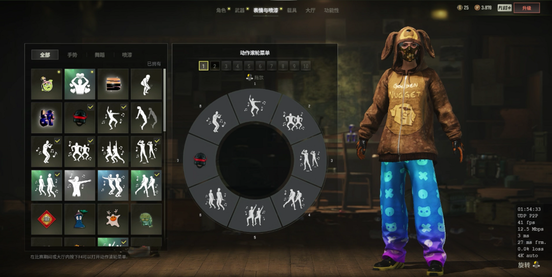 装备描述:炫酷女团大厅【三成长型-异色恶魔ACE32-弥诺陶洛斯AUG-午夜98K】大金牙/拉风龙金裤/电玩裤/尼罗渔夫帽/小兔学院水手套装/黄东南亚/蟒蛇花园夹克/小叮当裤/主播手套/拉风龙裤/枫叶M4/魔女M762