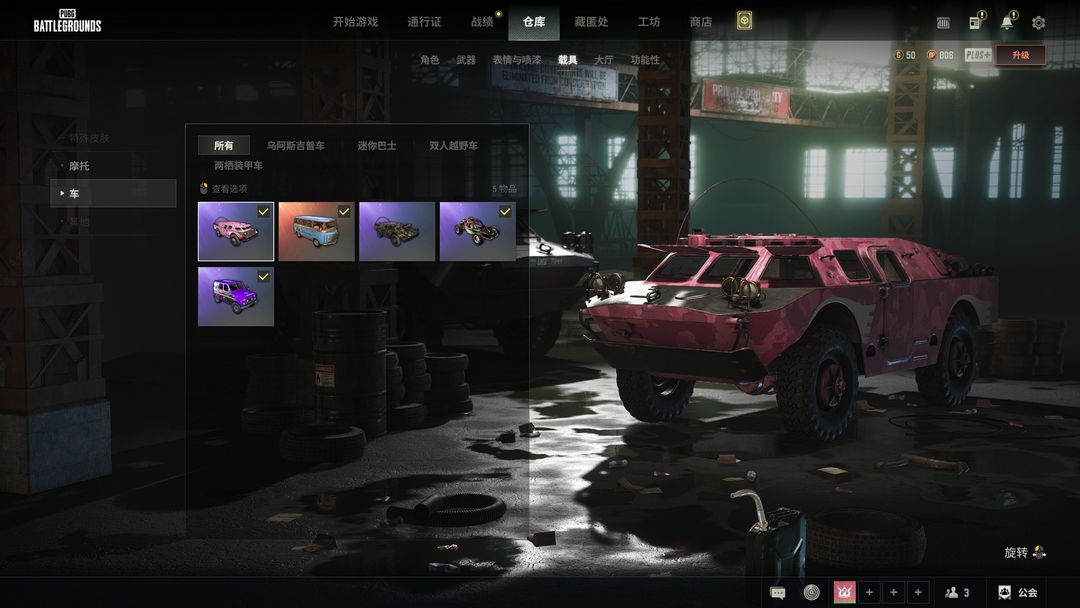 PUBG 翡翠小绿烟+无信号M4+恶魔ACE+米诺AUG+粉色装甲车
