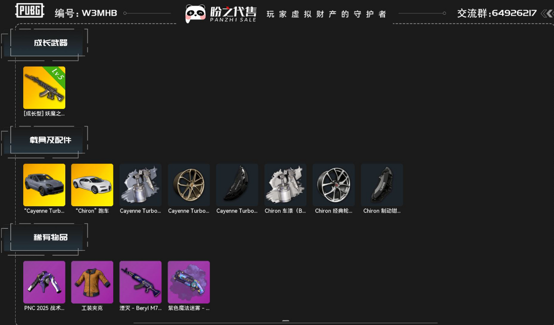 二级148148√5级妖魔之触√保时捷跑车√布加迪跑车√弥诺陶格诺斯AUG√工装夹克√紫色魔法迷雾
