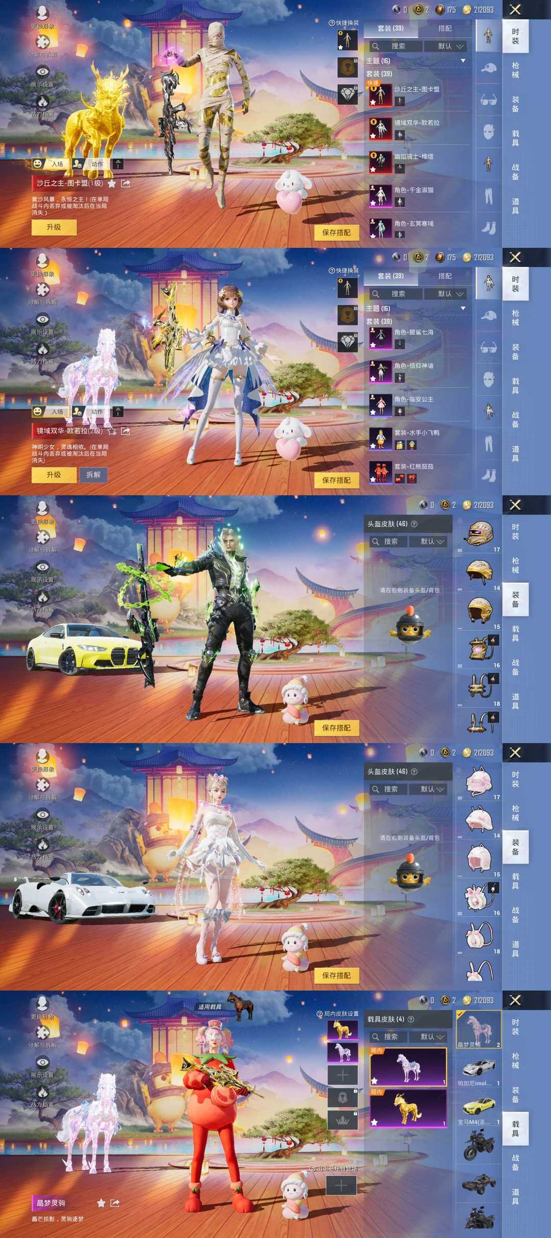 装备描述:3红装37粉❤沙丘之主木乃伊➕欧若拉➕维塔♥满级恋语墨龙幽焰骑士金蛇镇世♥金麒麟粉马宝马帕加尼♥猪妹