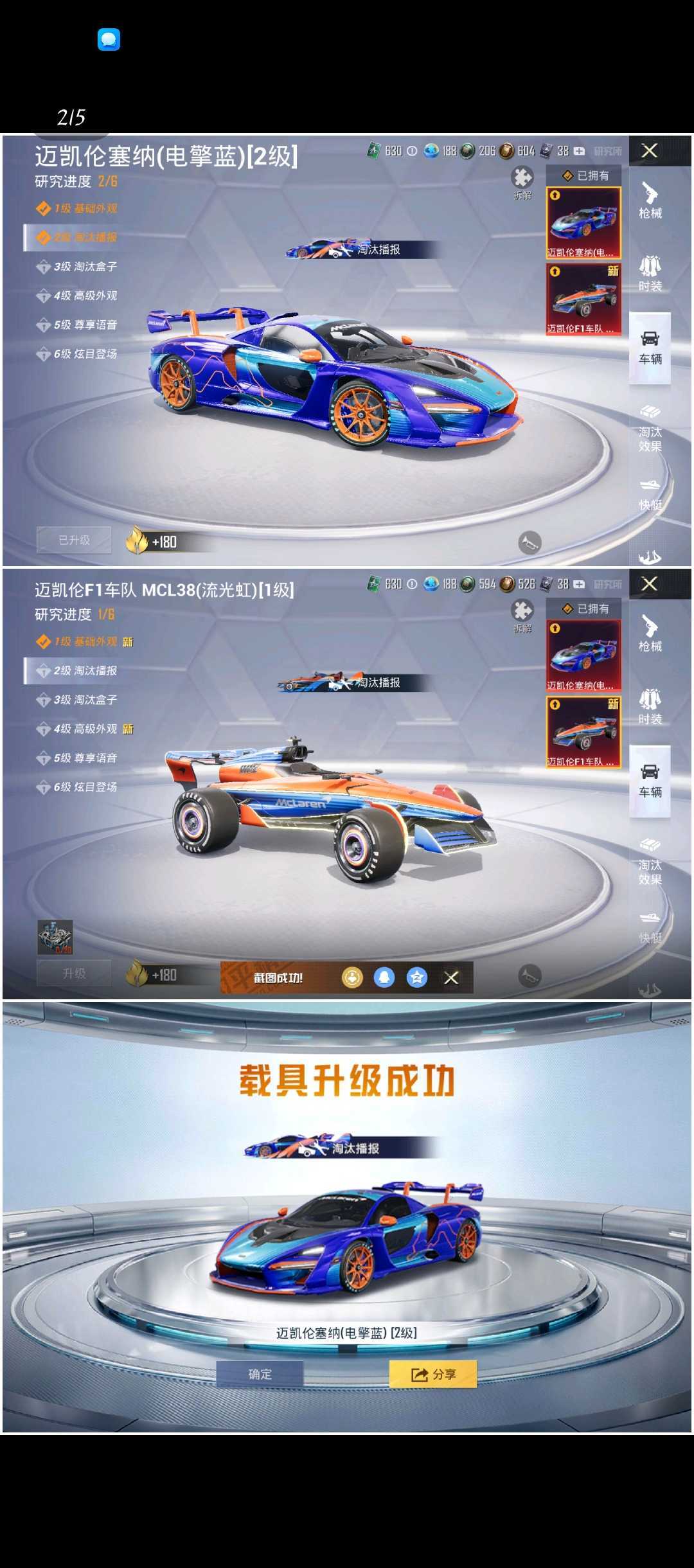 红装沙丘之主图卡蒙★新迈凯伦塞纳电擎蓝★新迈凯轮F1流光红★6级金蛇镇世Scar★5级手榴弹瓶中星球