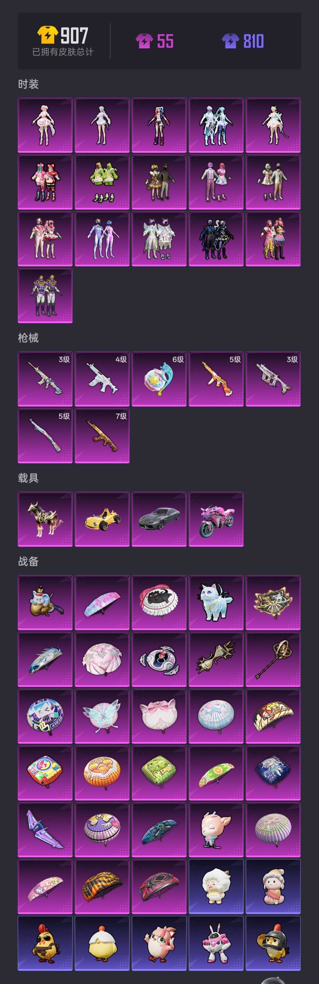 限制: 撤单率<49%才可租用此帐号装备描述:禁止开挂,禁止坐挂车,禁止骂人,禁止分解枪械等~谢谢宝宝们~ 套装203个,粉套16个, 枪皮217个,特效枪7个 载具皮肤4个 装备318个,三级头42个,三级包45个 滑翔尾迹4个,伙伴4个,动作54个 祝您游戏愉快~
