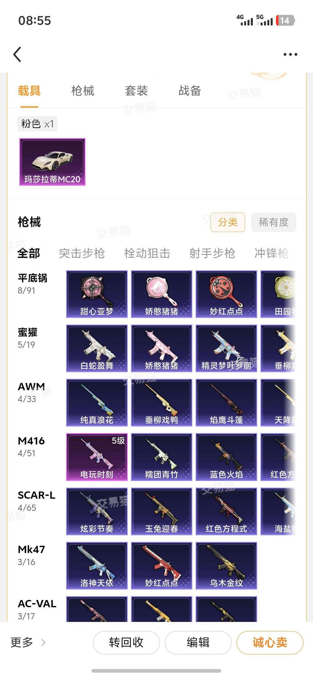 1玛莎拉蒂 1升级枪 1粉装 1飞行器 94枪皮 74套装 28771热力 6印记 王牌
