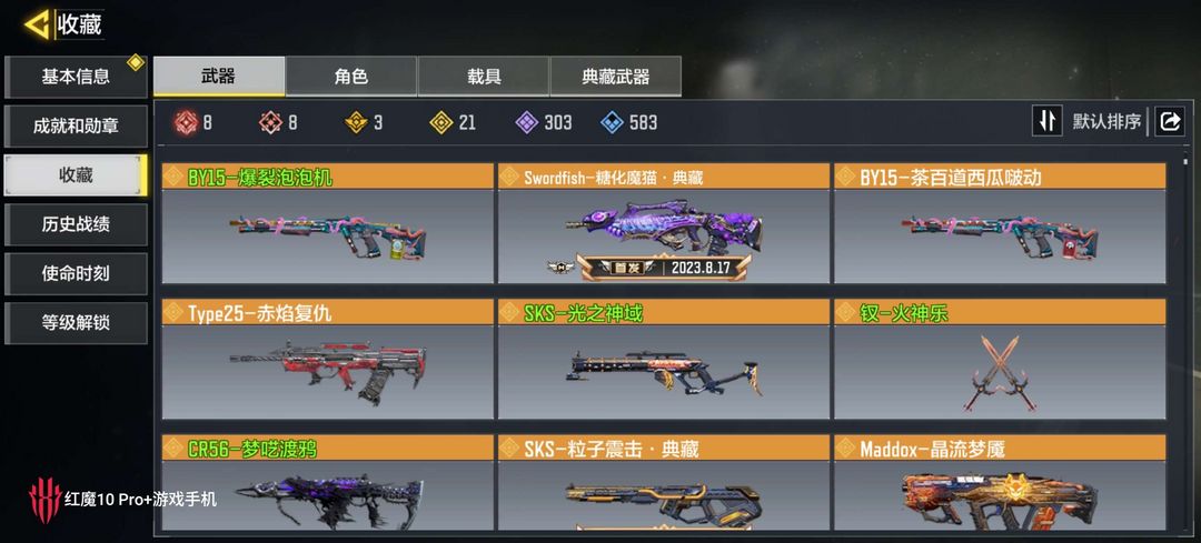 装备描述:9个满级神话,8枪皮,1角色。 红莲,万刃,暗夜奏鸣曲...