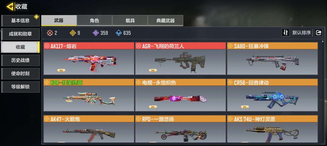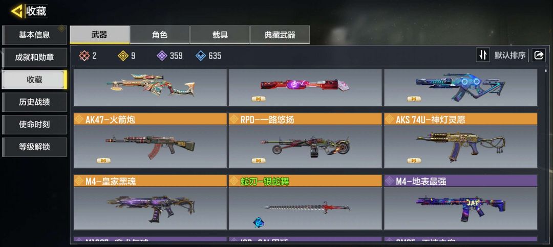 1神话9传说,AK117熔岩,CR56回音律动,AKS74U神灯灵愿,蛇刃银蛇舞,m4皇家黑魂