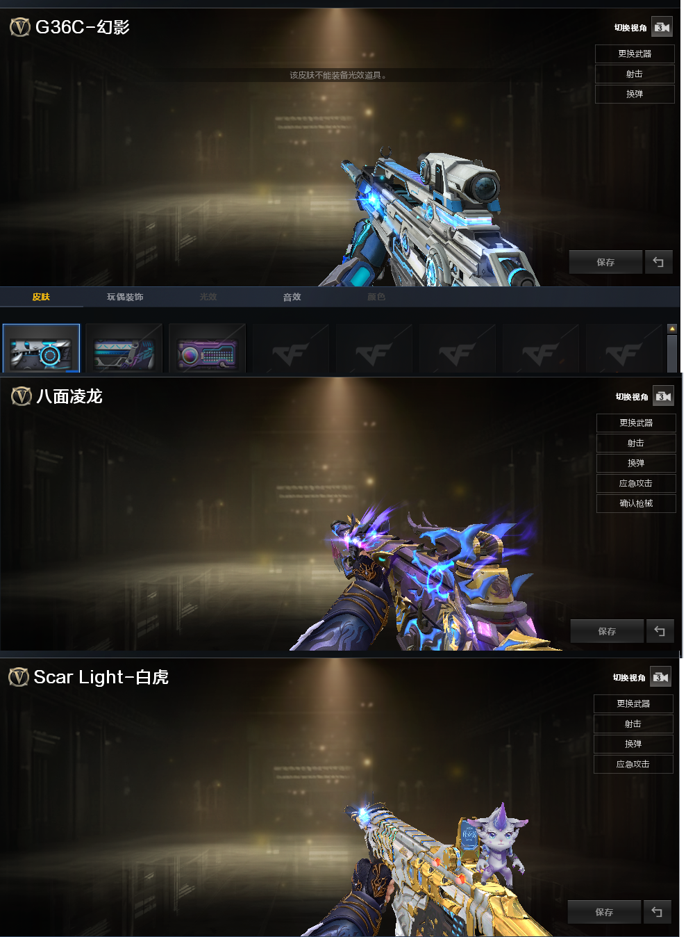 装备描述:排位:可以、、、、、、、、、、、、生化全装(可以变更背包、查看生化僵尸血量):无需换弹、炼狱-酷酷小狮、八面凌龙、6烈龙、6盘龙、双面神、死亡之眼、MAC-涂鸦、3把炽芒蝶刃、手斧镜、生化减速手雷、超级对讲机、全部弹匣、、、、、、、、爆破全装:G36幻影、白虎、QBZ源金色蔷薇、、、生化人物(神威莲华、传说星骇、潘多拉-N)