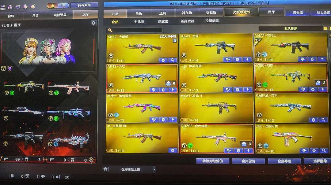 【英雄:33 王者:21】加特林-炼狱,G36c幻影☆六烈蝴蝶☆竞技荣光98k☆皮肤音效卡☆开挂追责