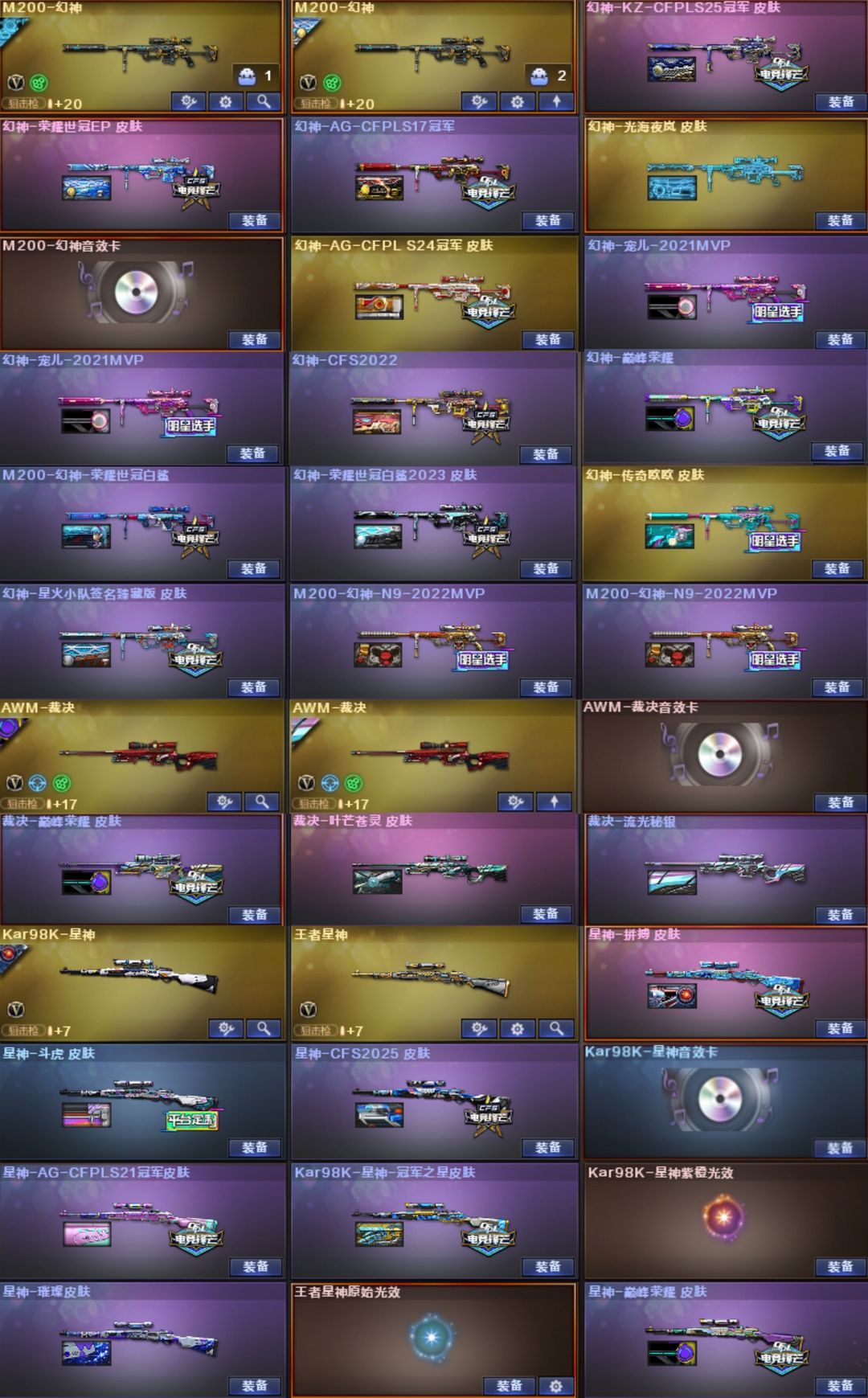 幻神光海夜岚天袭EP全套幻影金名⭐幻神卡KZ星火15皮裁决卡4皮⭐白虎虎牙拼搏8皮QBZ虎鱼10皮