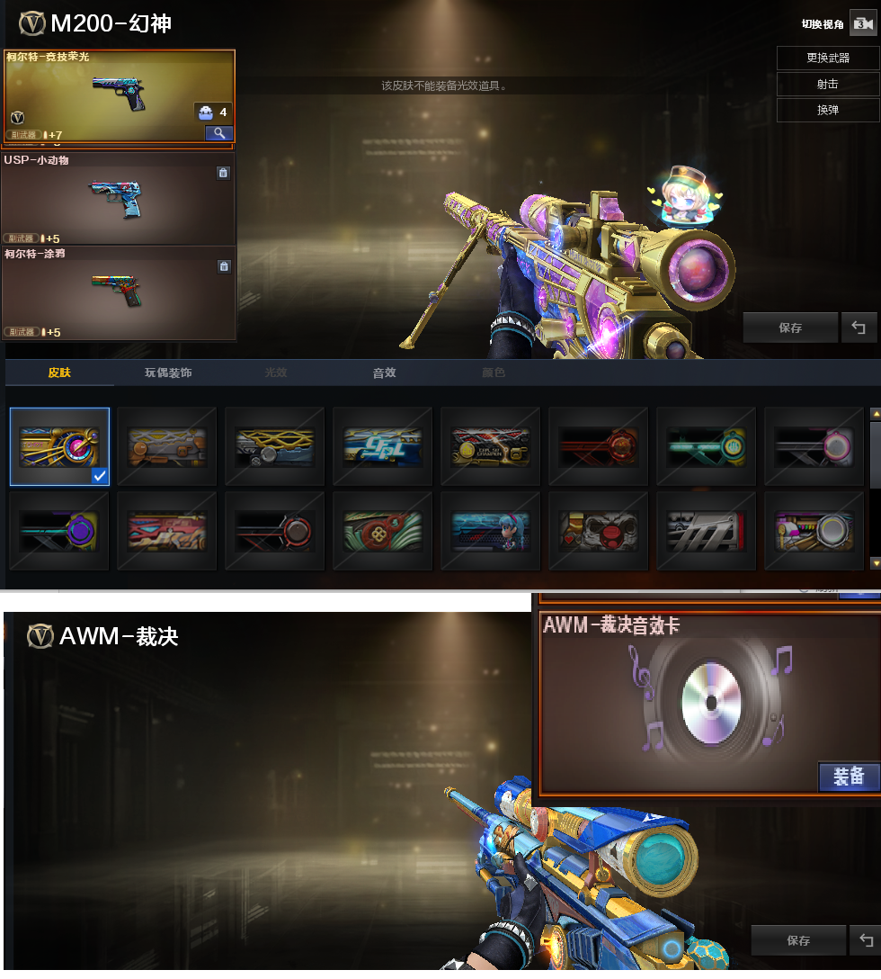 装备描述:排位:可以、、、、、、爆破四防:幻神(幻神-Heartshot皮肤)、裁决带音效、、USP手枪、柯尔特、、、神威天绫、G36C幻影、QBZ金色蔷薇、白虎、、、竞技荣光手雷、、、爆破人物(枪娘樱)