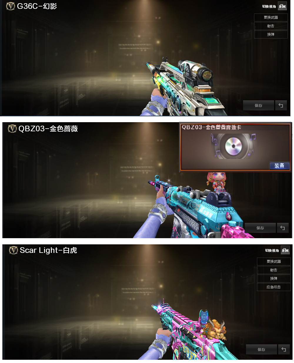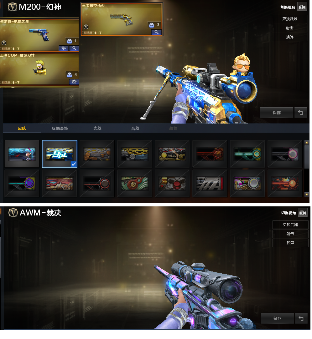 装备描述:排位:可以、、、爆破全装:幻神音效2皮肤(冠军之幻、23白鲨)、、、荣耀EP柯尔特、王者破空枪刃、王者刀锋、、、G36C幻影、QBZ蔷薇、白虎、神威天绫、传说辉光、、、幻神音效、雷神音效、黑骑士音效、蔷薇音效、、、雷暴手雷、竞技荣光手雷、雷霆王者手雷