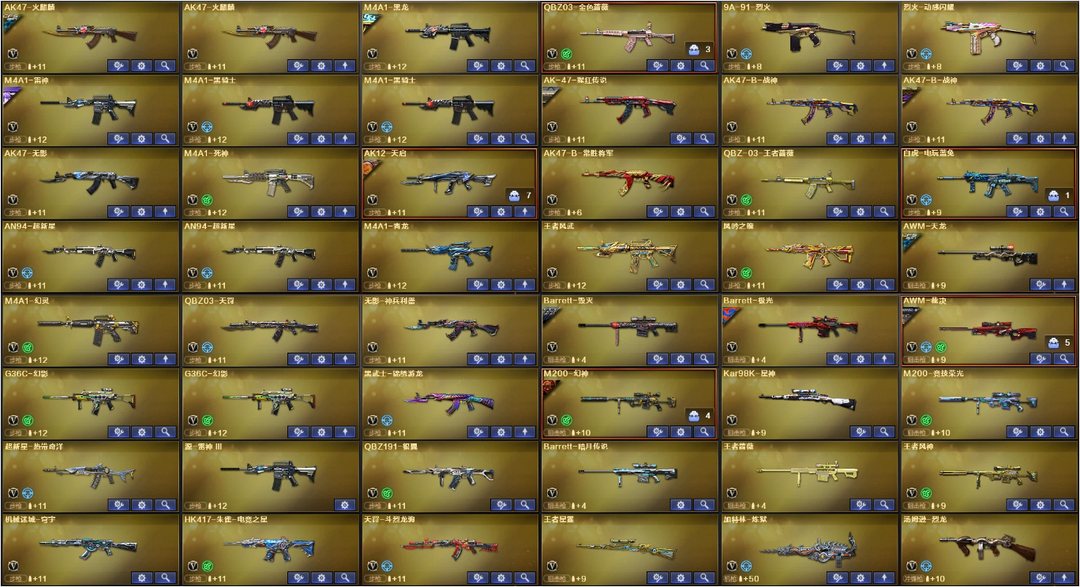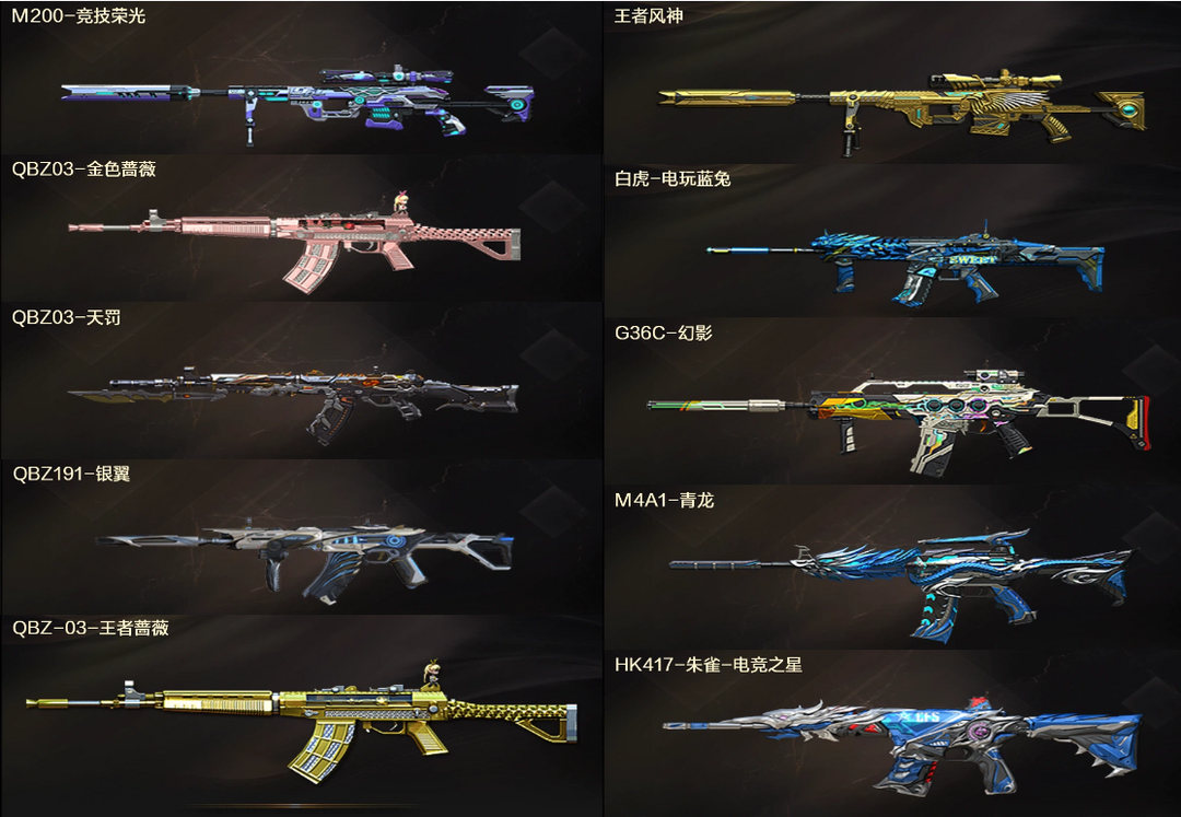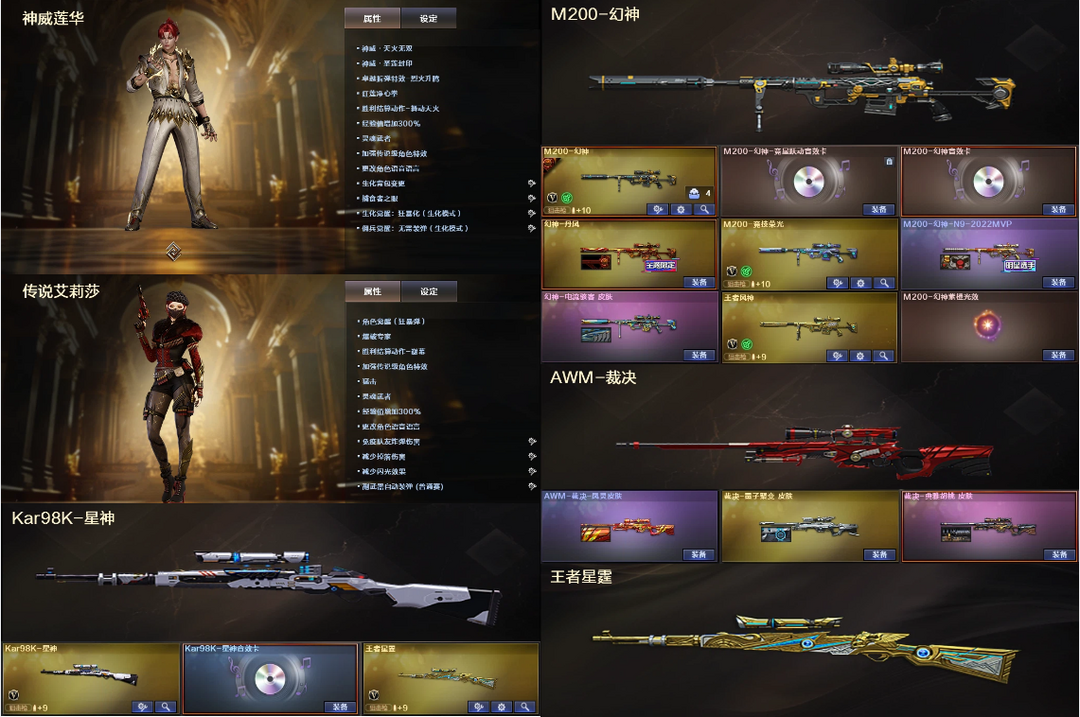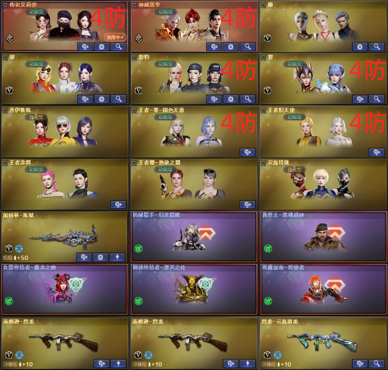 4防神威莲华艾莉莎✅幻神5皮念旧音效卡+星神裁决3皮✅QBZ蔷薇幻影白虎天罚银翼朱雀+7满副✅4防智
