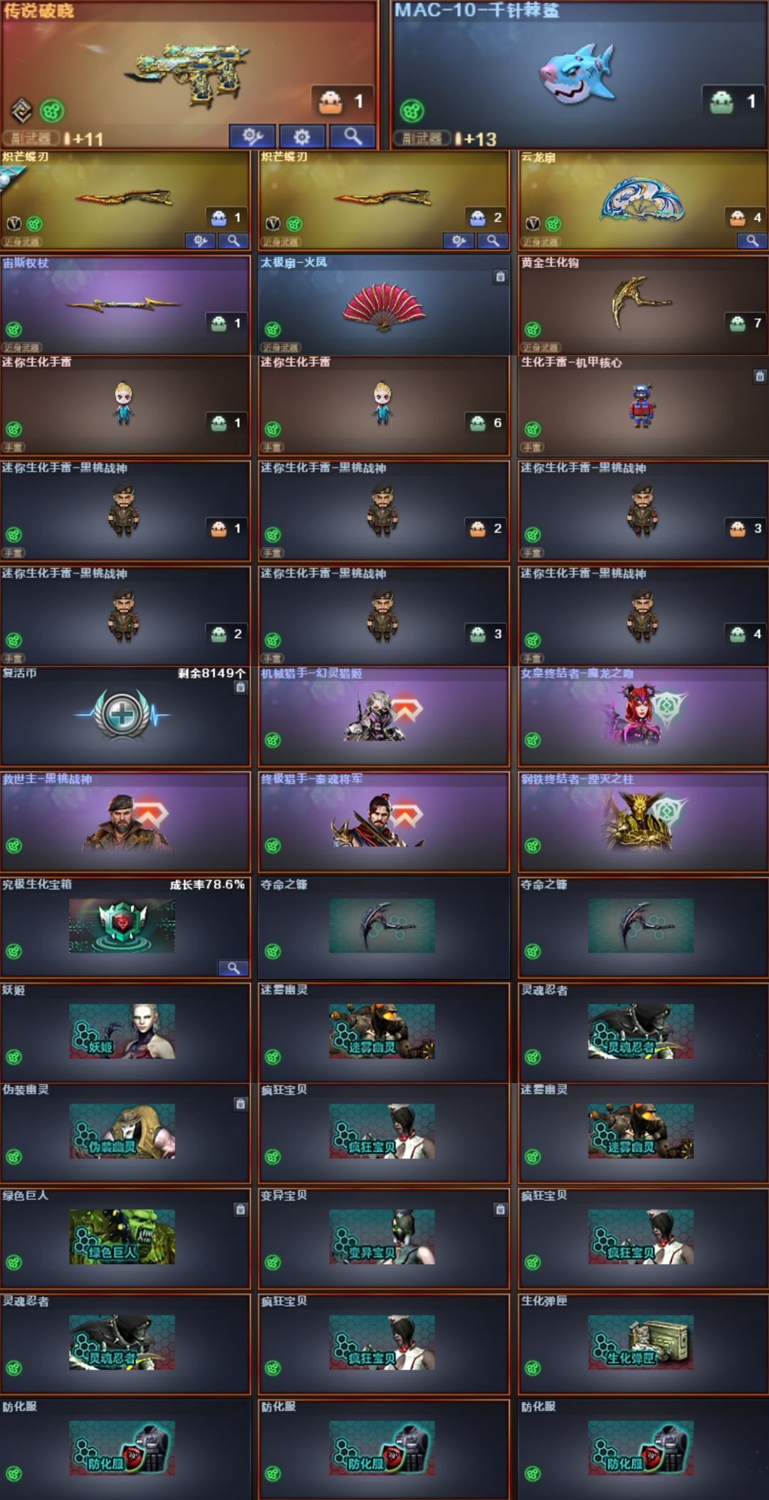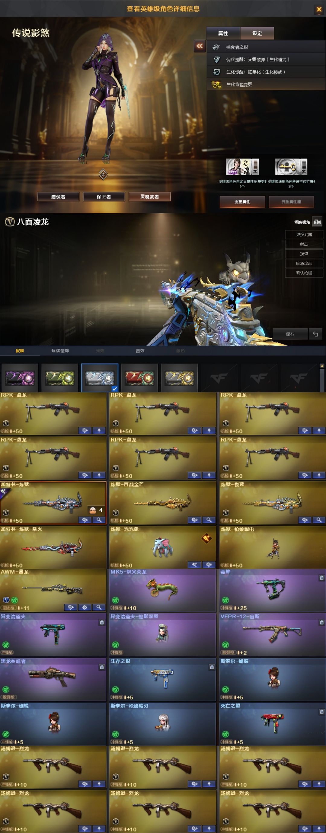 星骇圣谕艾莉莎影煞⭐幻影天戎玄豹⭐炼狱泡泡象八面凌龙满皮⭐幻神卡欧欧白鲨6皮⭐裁决卡巅峰⭐QBZ3皮