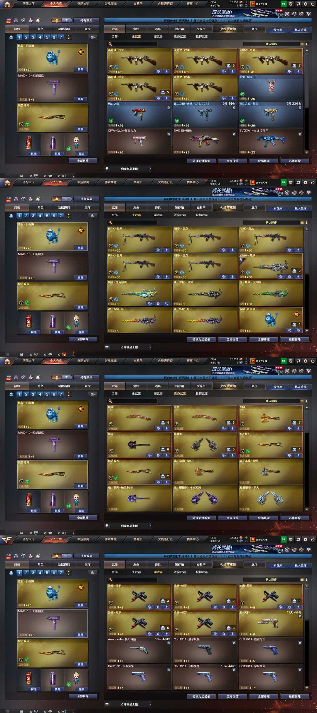 炽芒蝶刃x2首发四防传说神威莲华6盘6烈6副手mac斯泰尔萌兔炼狱祈雨狮子x2+惊涛骇浪全幽灵满弹夹